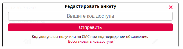 Ввести пароль для редактирования (вы вводили его из СМС при добавлении объявления).