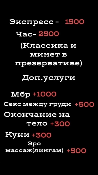 26.07.2021 14:04 №24933Симпатичная девушка с приятной внешностью приглашает в гости мужчину для приятного времяпрепровождения в свою квартиру в центре ! Фоточки свежие! Жду ваших звоночков!выезда нет.час 2000.есть экспресс1,3.есть мбр, анал, массаж входит.+7 (960) Показать номер