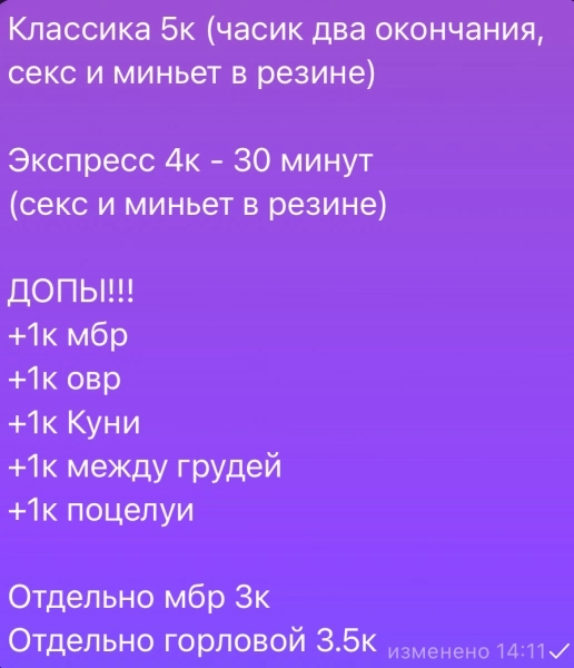 30.12.2024 16:50 №62893Работаю звоните девушка которая сделает всё и ты увидишь довольный))) Энгельс+7 (993) Показать номер