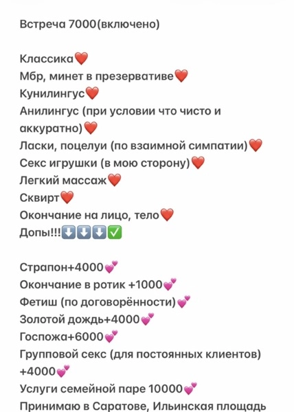 14.02.2026 08:06 №56698Индивидуалка.Саратов , ильинская площадь.Без предоплаты. Встреча 7000 включено классика,МБР,куни,массаж, сквирт, поцелуи,ласки,секс игрушки, анилингус,окончание на тело,лицо)Не веду долгие переписки, не пишите ради интереса, иначе блокирую.Фото мои!!+7 (906) Показать номер
